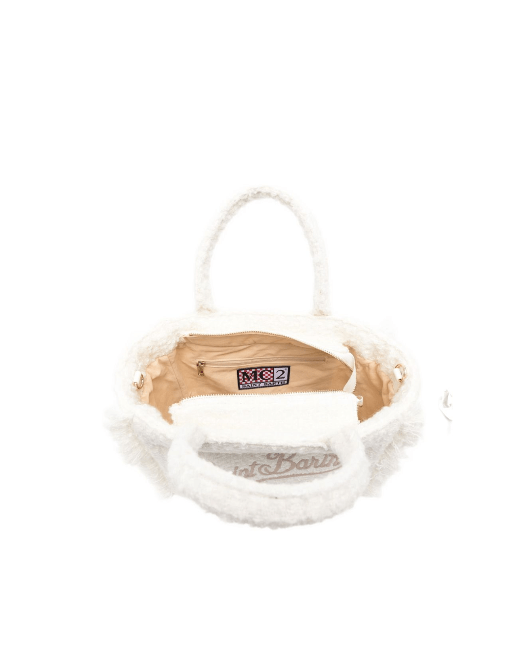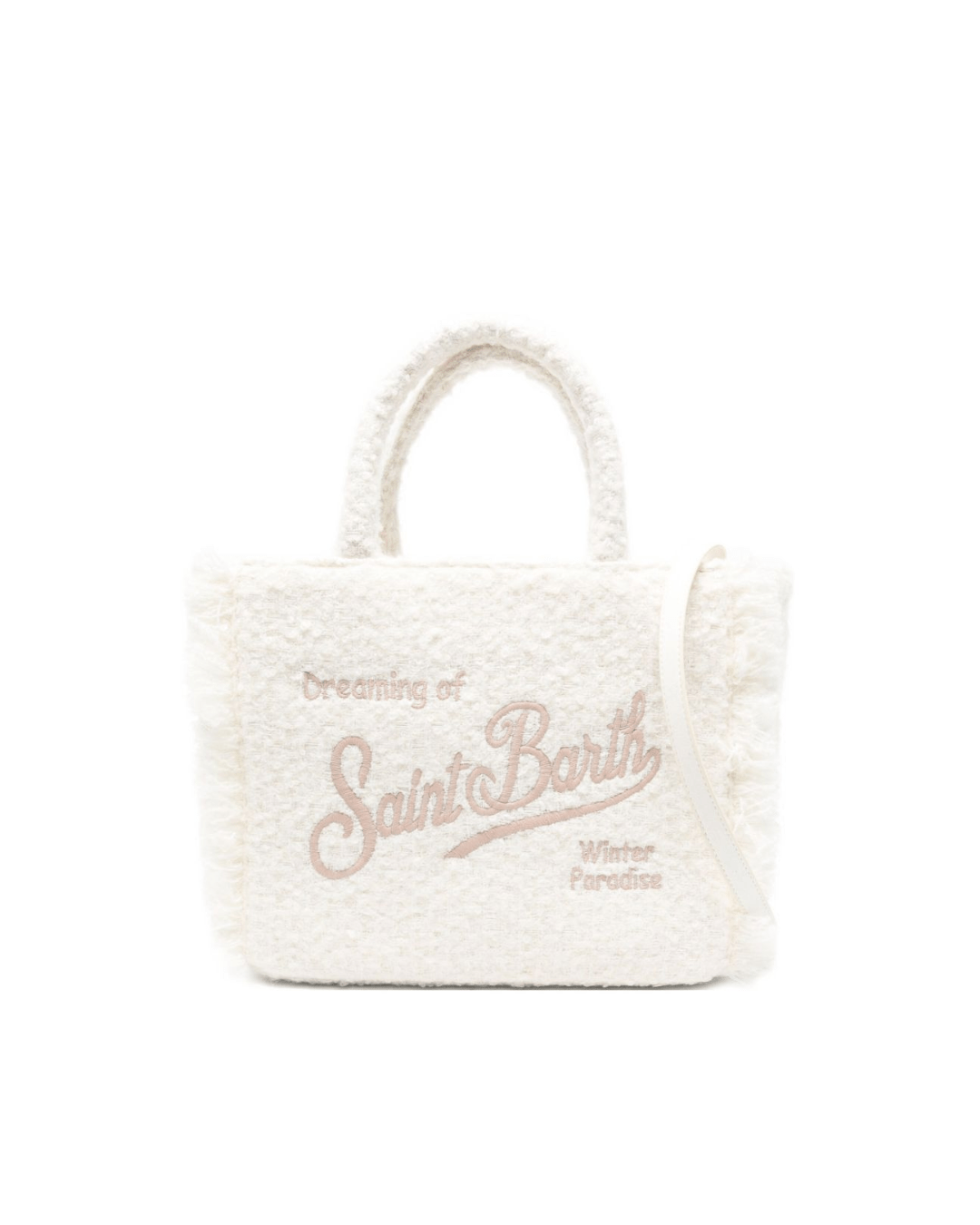 Un classico senza tempo: il tweed incontra linee moderne per un look sofisticato e versatile.Borsa a mano in misto lanaTracolla regolabile e removibileTessuto tweedTinta unita biancaTasca internaLogo ricamatoDimensioni: 27 x 25 x 14 cm