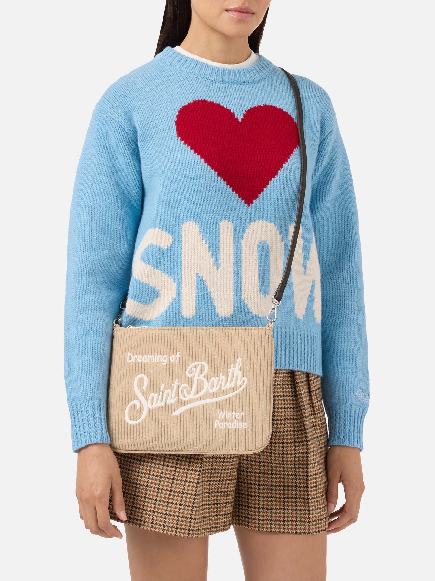 Casual e chic: velluto a coste beige per look rilassati e sofisticati.Borsa piatta/pochetteTessuto in velluto a costeTinta unita beigeManico removibile, tracolla removibile e regolabileLogo ricamato