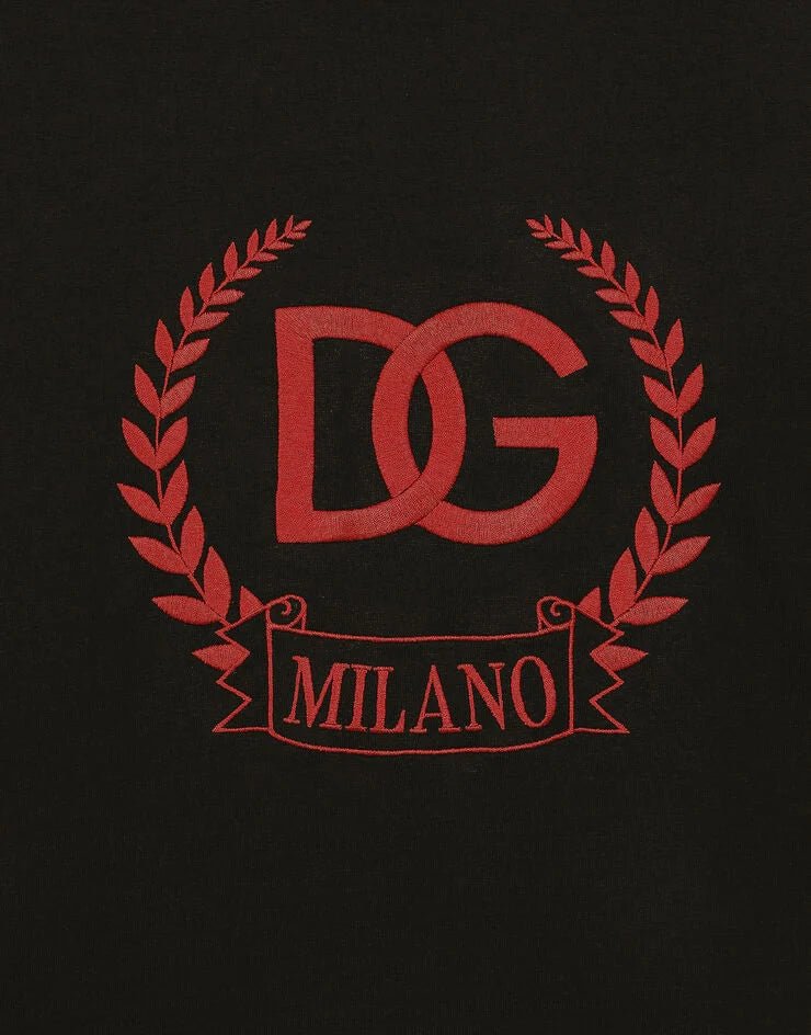 T-shirt realizzata in jersey di cotone con ricamo logo DG Milano e alloro: